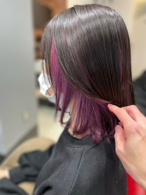 今ブルーバイオレッドは暗髪カラーでもおしゃれなヘアカラーが楽しめるので人気のカラーです。