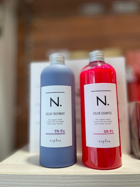 エヌドットからでている紫シャンプーやピンクシャンプーを使っていただくと色持ちもよくなりますよ!